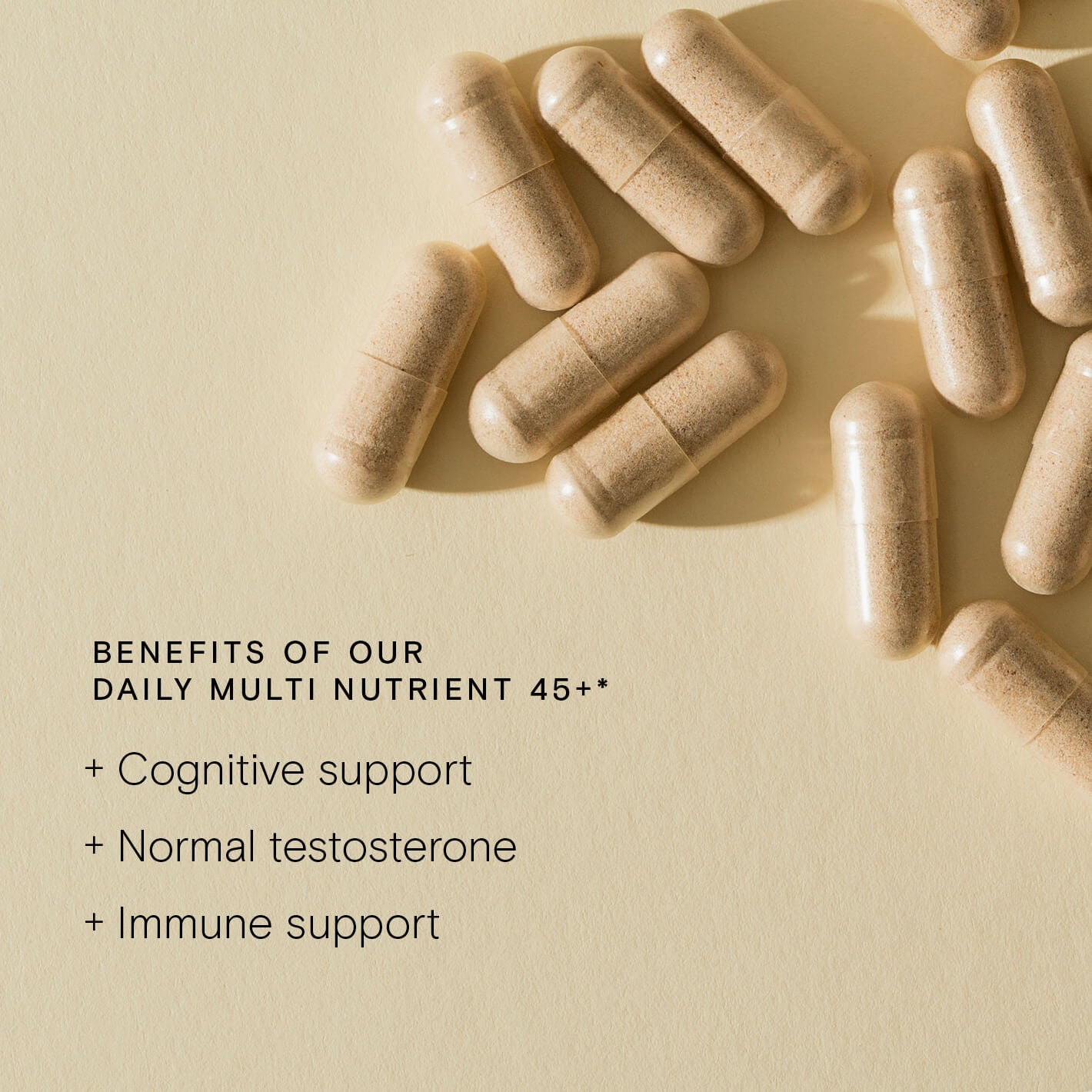 "Expertly calibrated to support the nutrient demands of men aged 45+, this bespoke formulation supports energy levels, muscle health, testosterone, immune support and heart health."