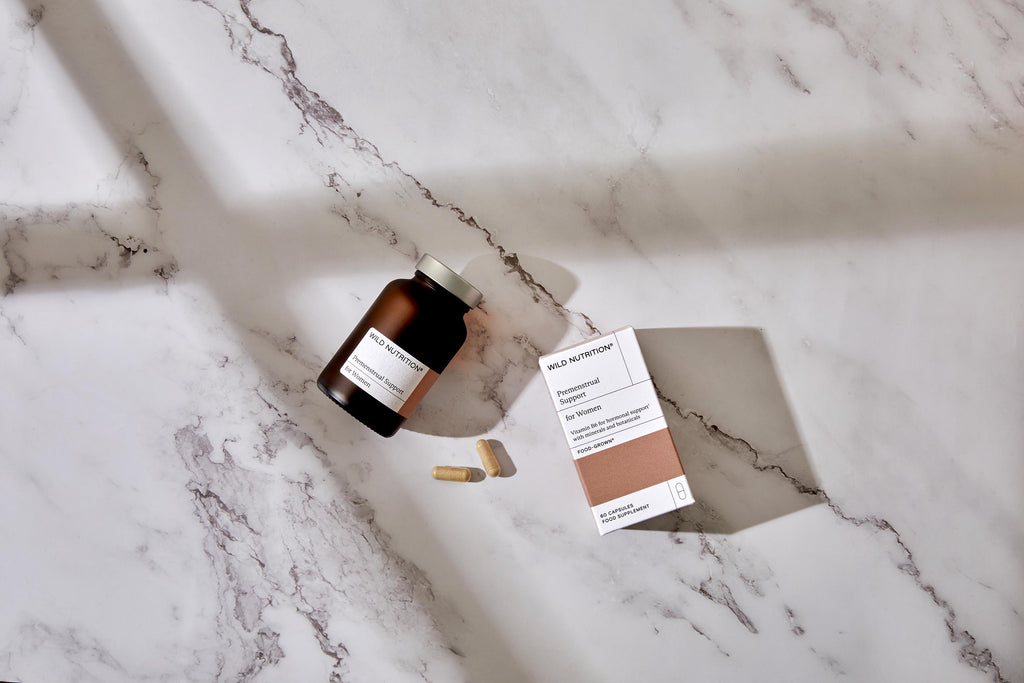 "Formulated for hormonal regulation, mental resilience and skin health, Wild Nutritions Premenstrual Support is holistically blended with botanicals, minerals and Vitamin B6 to support your monthly cycle"