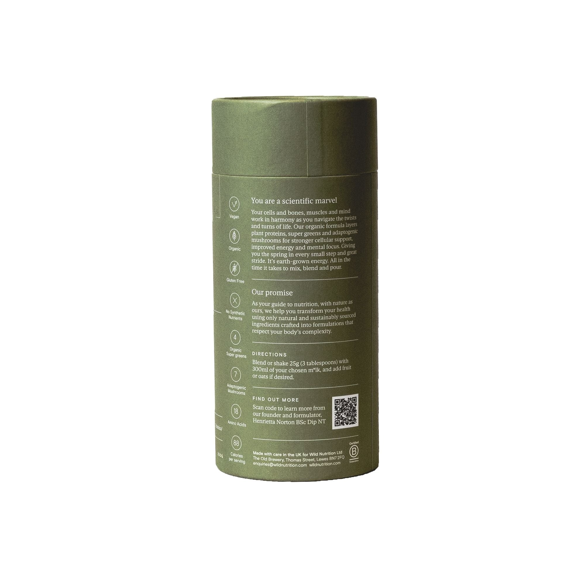 "A vegan blend of organic ingredients, layered with super greens & adaptogenic mushrooms to support your energy, immunity & psychological function.Support your mind and body with the triple power of vegan protein, super greens and mushroom powders. Much more than just a protein, this product harnesses some of Earth’s most nutrient-dense foods in one convenient blend, providing 16g protein, 2g of amushrooms and 2g of super greens, to support energy, immunity, and focus. All in the time it takes to blend, pour and drink. Key benefits: Reduce tiredness and fatigue. Energy Metabolism, Psychological function, Immune support, Certified organic"