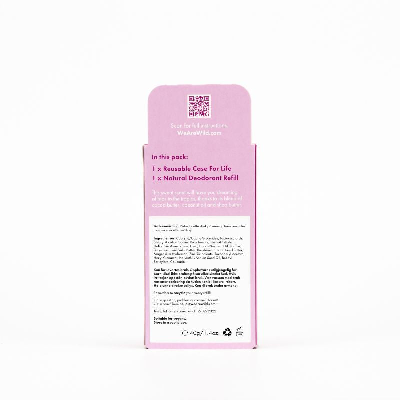 Notify Me When Available"Wild is on a mission to transform the culture of the waste of everyday bathroom products. The sleek and stylish looking air freshener applicators are reusable and made from durable aluminum and recycled plastic. The zero plastic air freshener refill is natural and compostable. Each skin care product in the Wild's range is vegan friendly, cruelty-free, dermatologically tested and free of artificial perfumes, parabens, sulfates and aluminum. True to the shape, its deodorant is skin-friendly with maximum sweat safety. This package includes 1 purple reusable aluminum case and 1 natural scented deodorant from coconut dreams.P.S. Don't panic if there's some oil staining on the refill, it's because it's made entirely of paper.Color: Purple"