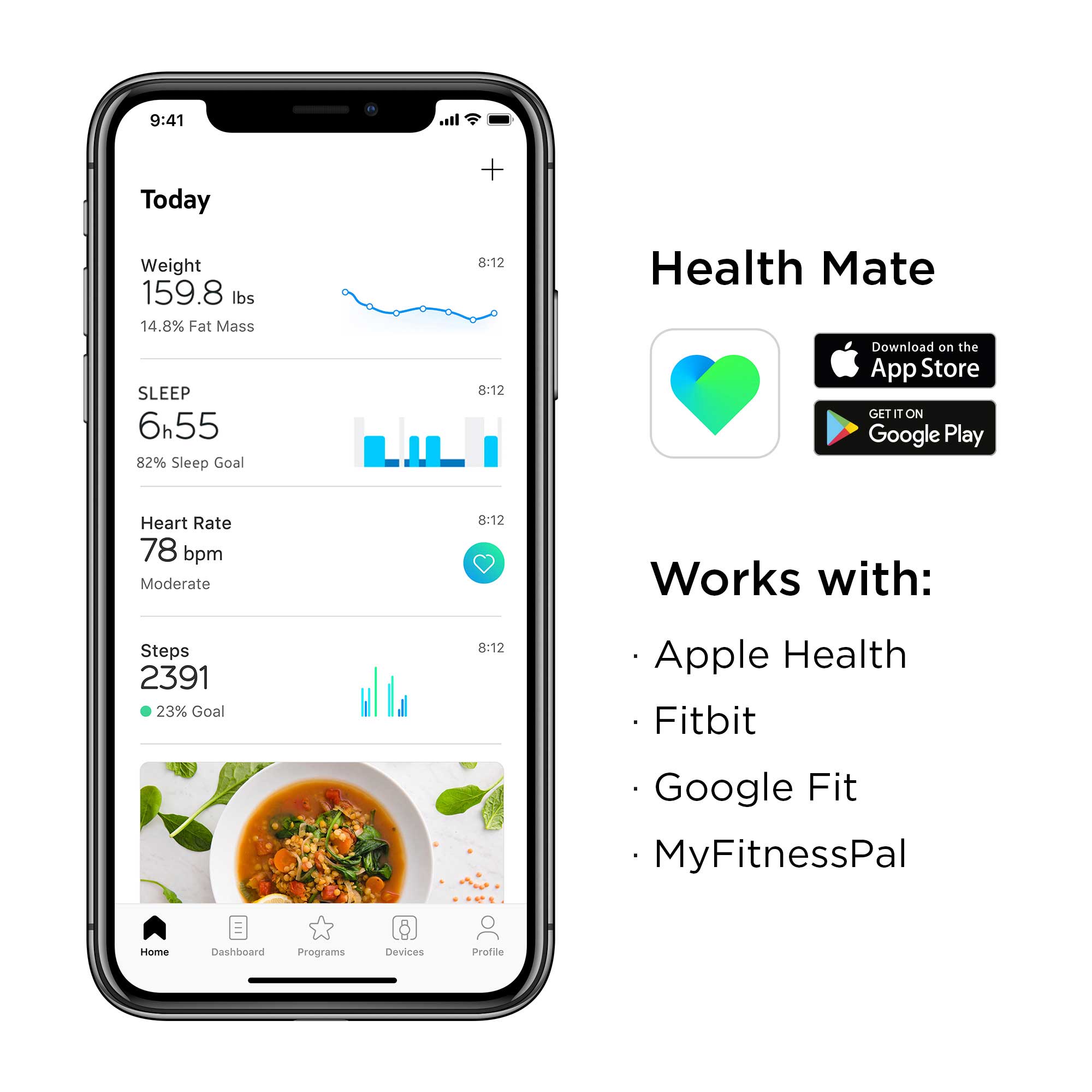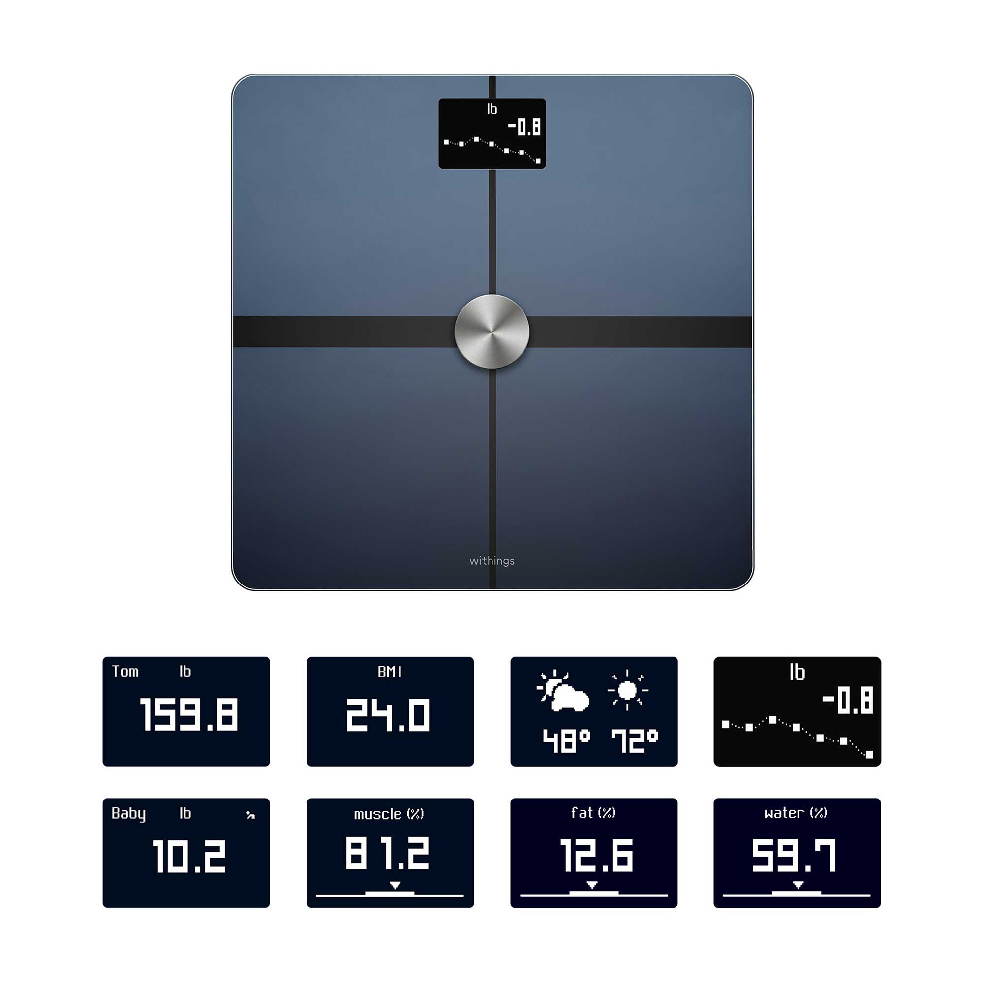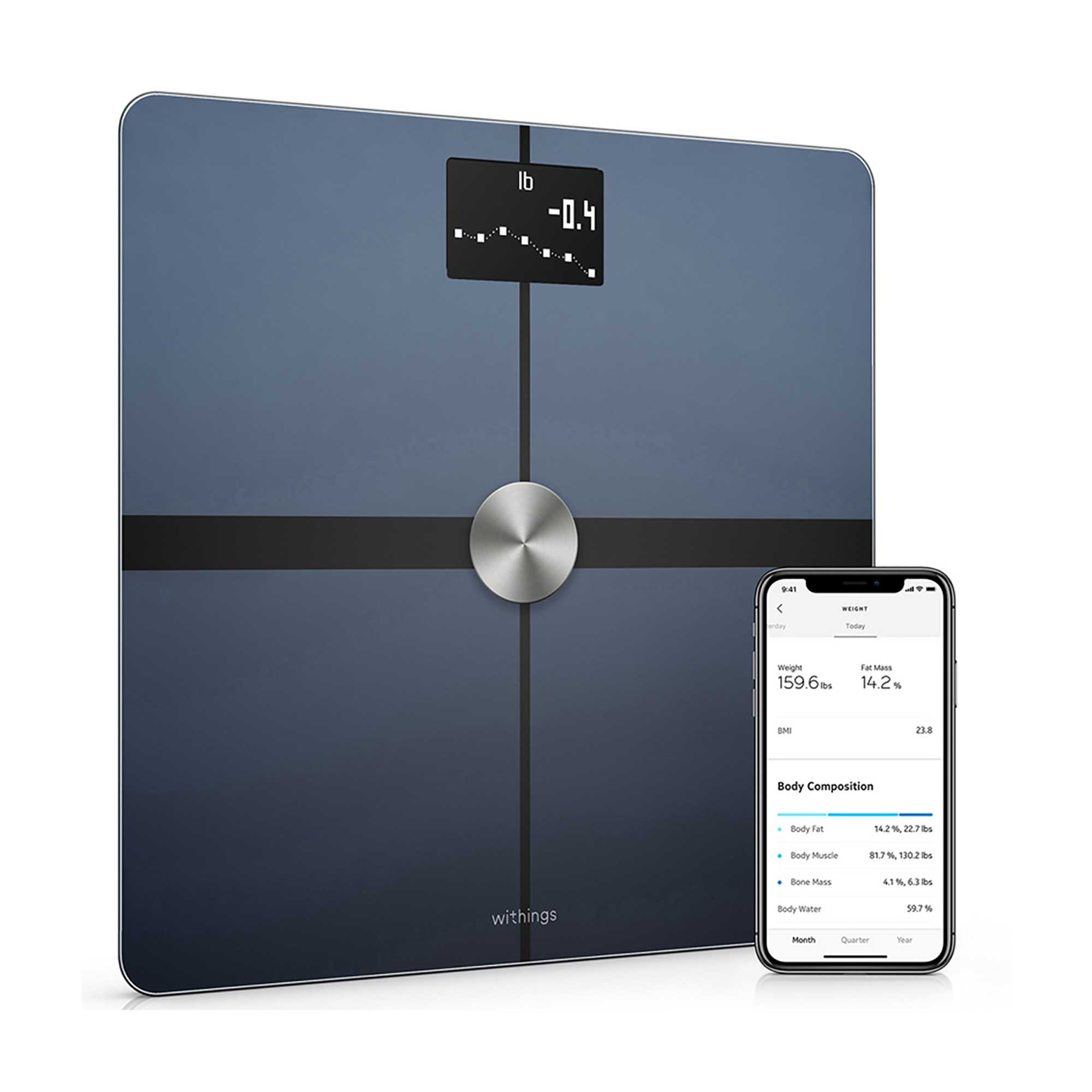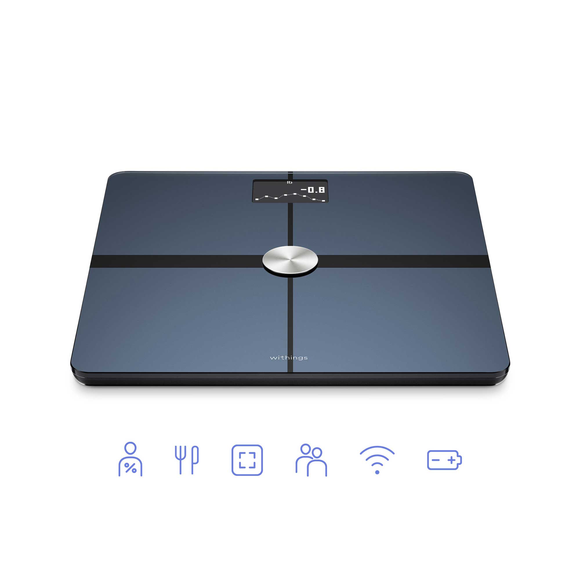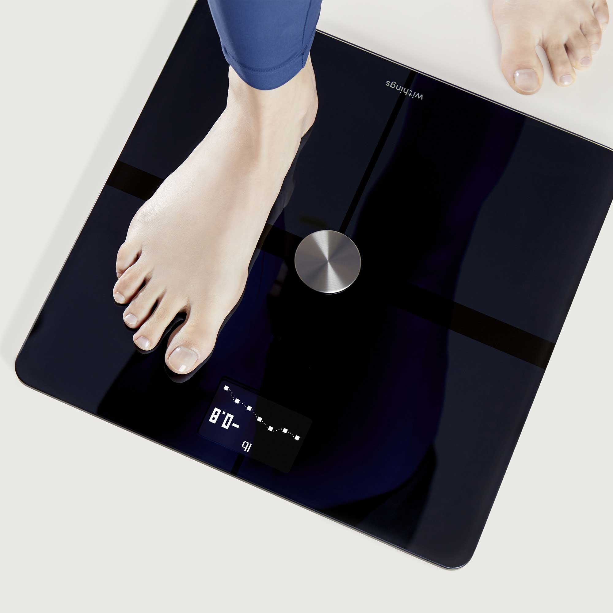 Notify Me When AvailableA Wi-Fi smart scale that uses patented Position Control technology to deliver the most accurate body composition readings, including weight, body fat and water percentage, muscle mass and bone mass. Withings Body+ provides immediate on-screen feedback and automatically synchronizes with your smartphone to display trends and help you reach your weight goals. Beyond figures, Body+ is paired with the Health Mate app to show you trends, insights, and nutrition tracking to put your caloric intake into perspective. The scale recognizes up to 8 users with independent sync. Connectivity: WiFi 802.11 b/g/n, compatible with WEP/WPA/WPA2-personal networks. Bluetooth connectivity (Bluetooth Smart Ready). Body+ can be installed on a smartphone or a tablet, via the Health Mate app available on iOS (iOS 10 and higher) and Android (6.0 and higher). Cannot be set up from a computer. Weighing range: 5-180kg (9-396lb). 100g (0.2lb) graduation. Units: kg, lb, st lb. Large, easy-on-the-eye graphical display (2.4”x1.6”), 128x64 pixels. Free and unlimited online storage of weight readings. Stores up to 16 readings if scale cannot sync wirelessly. Powered by 4 AAA batteries (not included) with an average battery life of 18 months.