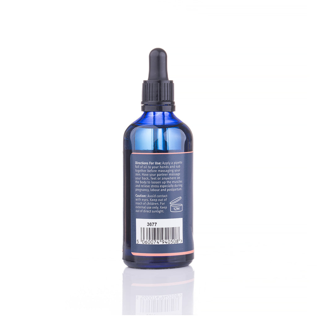 "A rich blend of essential oils includes jojoba oil which moisturizes your skin without leaving an oily residue. Enriched with nourishing and relaxing essential oils which help loosen the muscles, relieve stress, improve your mood and alleviate body aches. Use before during and after labour"