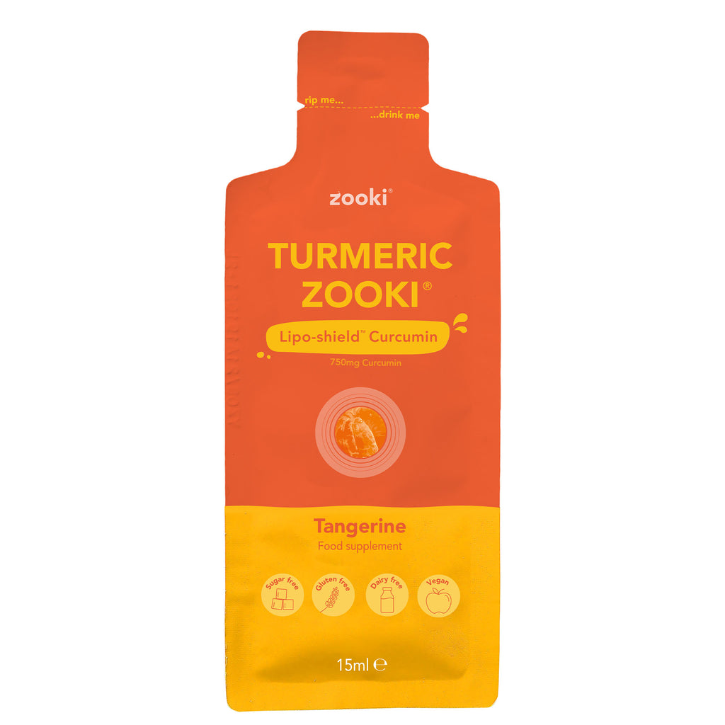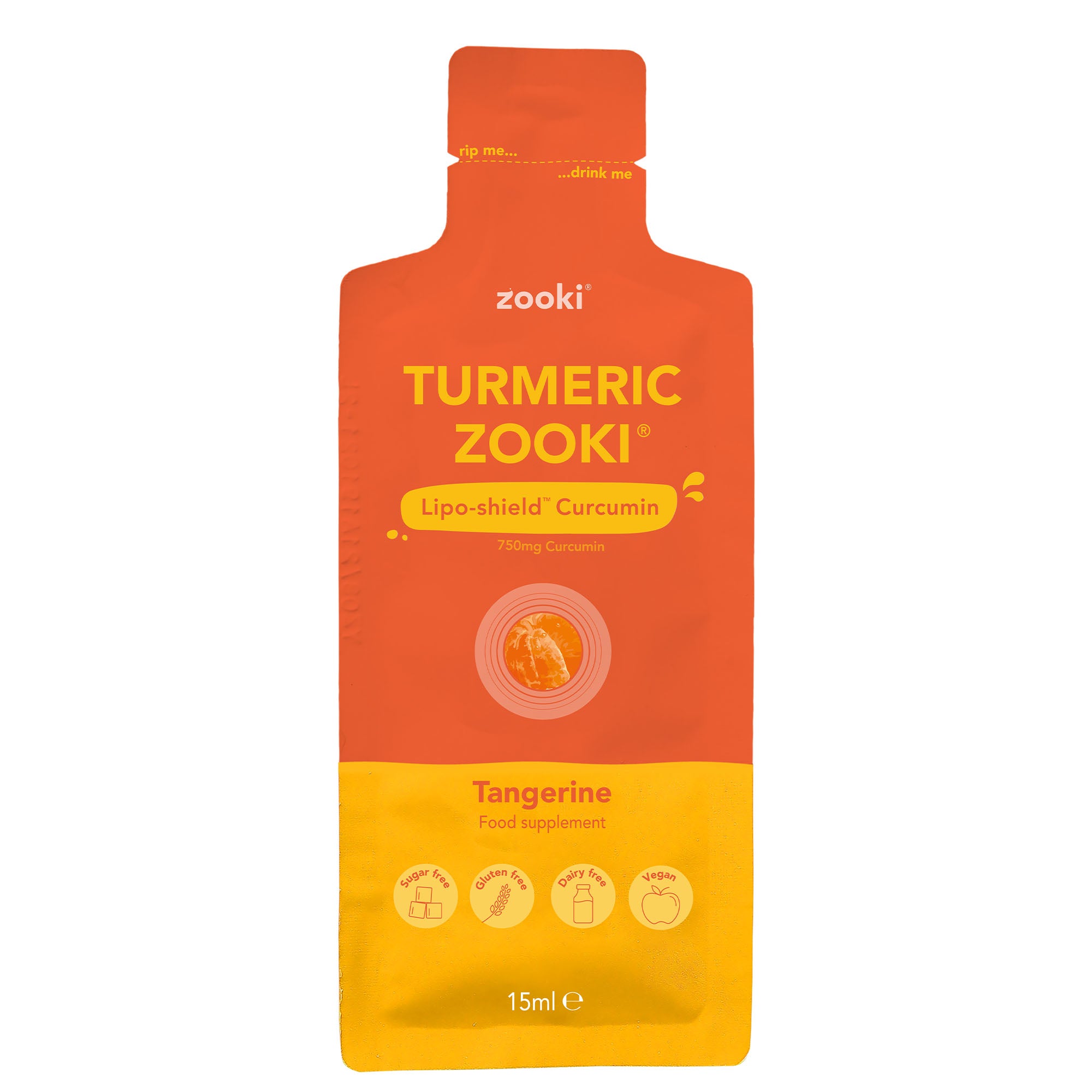 "Each sachet of Turmeric Zooki contains 750mg of active curcumin wrapped in "micelles". This water-soluble alternative to typical turmeric shots is easier for the body to absorb and has added natural tangerine oils to provide a delicious, refereshing flavour."